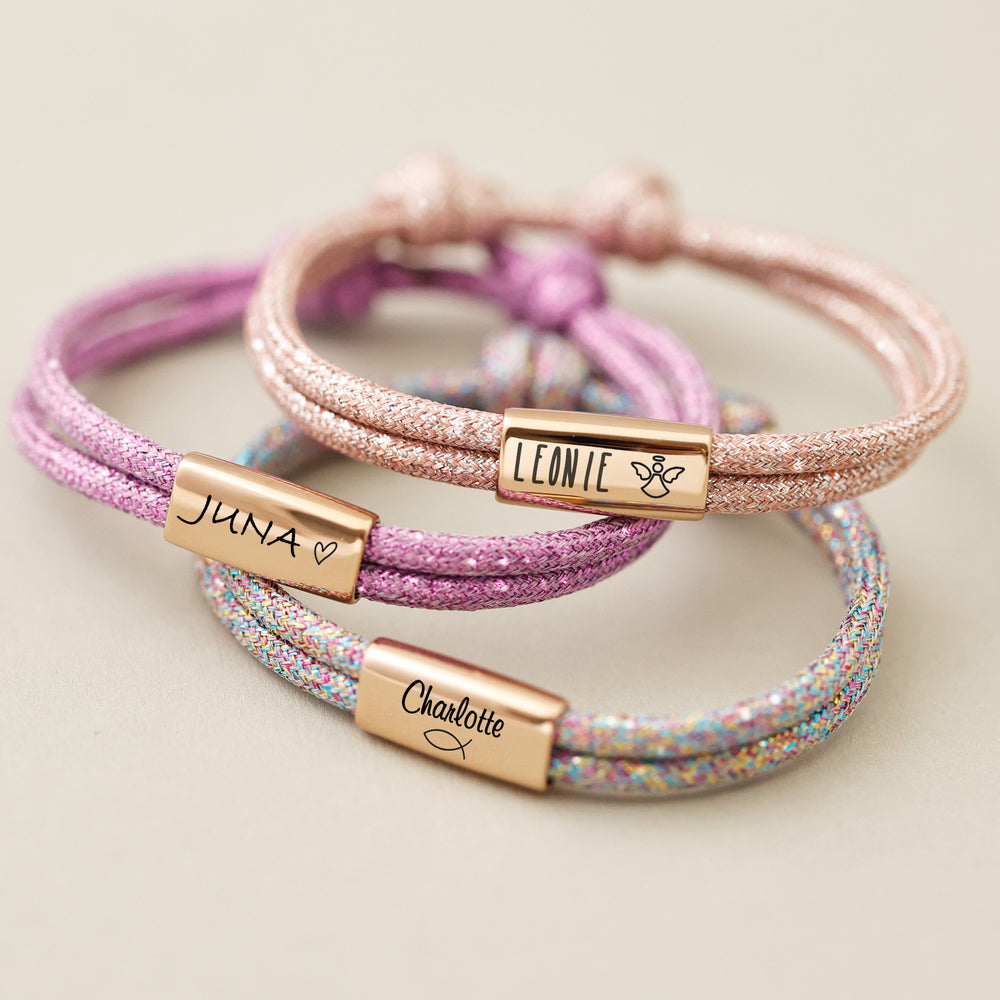 Ob als feines Silberarmband mit Perlen, ein graviertes Lederband oder ein Glitzer-Paracord für einen modernen