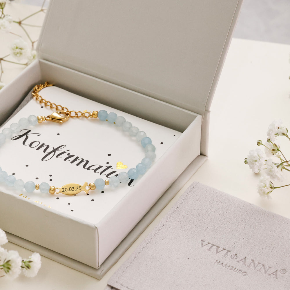 Das Armband hingegen begleitet dich am Handgelenk im Alltag und erinnert dich bei jeder Bewegung an deine Konfirmation. Es steht für Schutz,