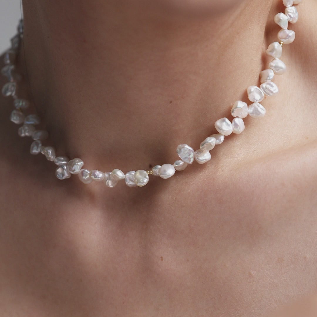 KS025Diese Halskette besteht aus sorgfältig ausgewählten, hochwertigen Barockperlen – jede Perle hat ihre eigene organische Form und doch fügen sie sich harmonisch zu einem stimmigen Gesamtbild zusammen.