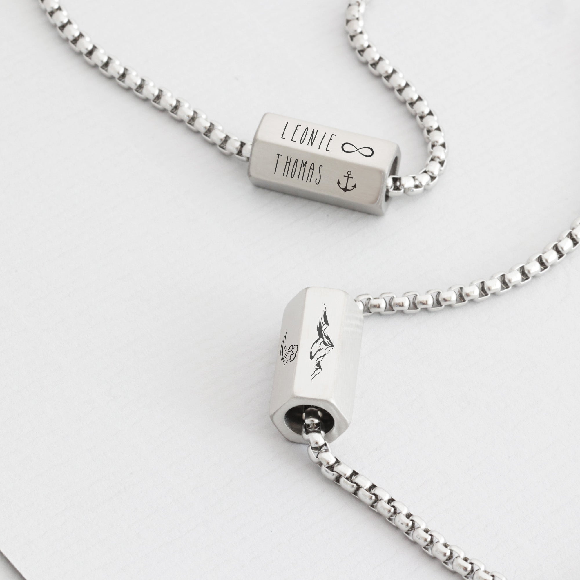 Personalisierte Herren Kette mit 6-seitigem Gravur-Anhänger – Familienkette aus Edelstahl